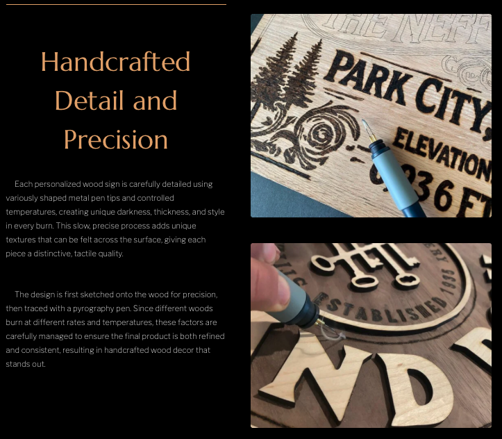 The poplar is finished with two coats of Danish oil, enhancing the natural grain while maintaining a warm, understated indoor look. No paints, vinyl, or shortcuts — just real wood and hand-burned craftsmanship.